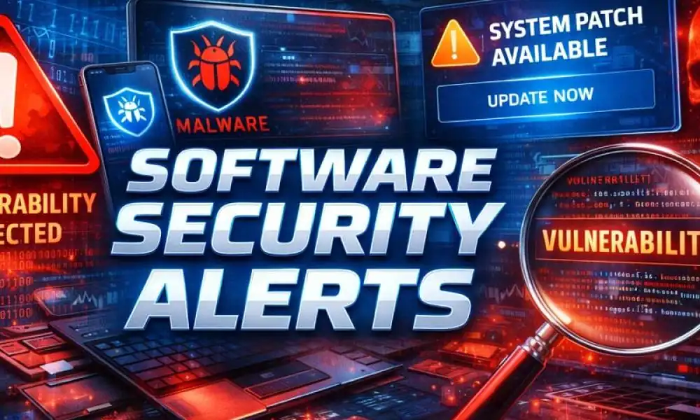 Software Security Alerts covers critical updates on software vulnerabilities, security patches, zero-day exploits, malware threats, and urgent risks affecting operating systems, apps, and enterprise software.